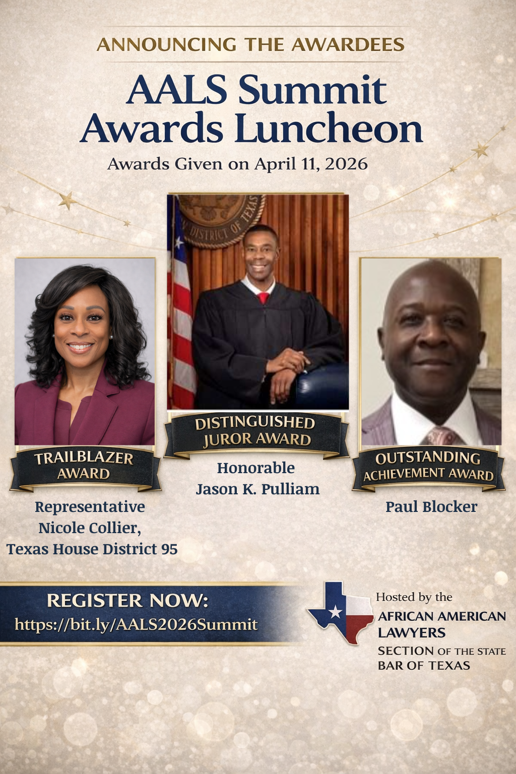 It is my honor and privilege to serve as Chair of the African American Lawyers Section (AALS) of the State Bar of Texas for the 2025–2026 bar year. Since our founding in 1992, AALS has been a home for Black lawyers across Texas, a place where we are supported, celebrated, and strengthened. I am humbled to carry forward this proud legacy of leadership, advocacy, and service.